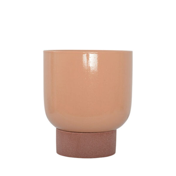 Bring a touch of modern elegance to your home with the beautiful Penny Planter Pot with Stand in Blush/Rosewood. Crafted from high-quality ceramic, this stylish piece features a gloss glaze finish paired with a textured, removable base, blending sophistication with natural charm.